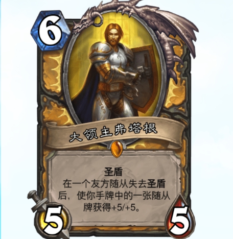 这张卡是一张全新的圣骑士随从卡,但是费用偏高,而且buff作用不是很明显,整个圣盾体系强度不够。