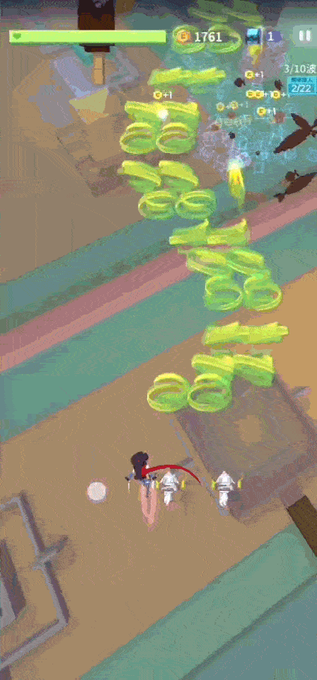 别看初始状态的小旋风有点单薄,风力却大到可以吹透一个敌人到达其身后的另一个敌人,是不是很厉害呢?