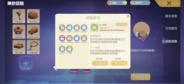 4、点击【技能学习】,然后选择自己想要学习的技能,花费摩尔豆就可以学习技能了。