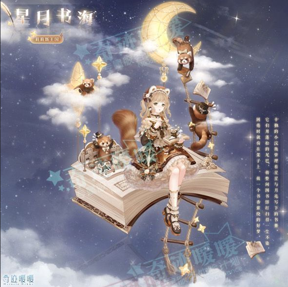 [星月书海]含正常姿势与特殊姿势,全新妆容“掩卷遐思”,特殊姿势外套“天书异变”,毛绒浣能尾巴“蓬松长尾”,精美可移动摆件“暖夜繁星”、“书香萦绕”、 “月下童话”、 “小熊猫日记”。
