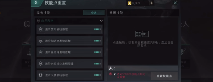 接下来我们需要重点对应用科学技能树进行加点,这是蓝图大师的职业核心。应用科学技能树分为发明原理和势力技术两个方面,其中势力技术大家可以根据自己所在的势力不同进行选择,而发明原理中艾玛发明原理以及专家艾玛发明原理必须点满。