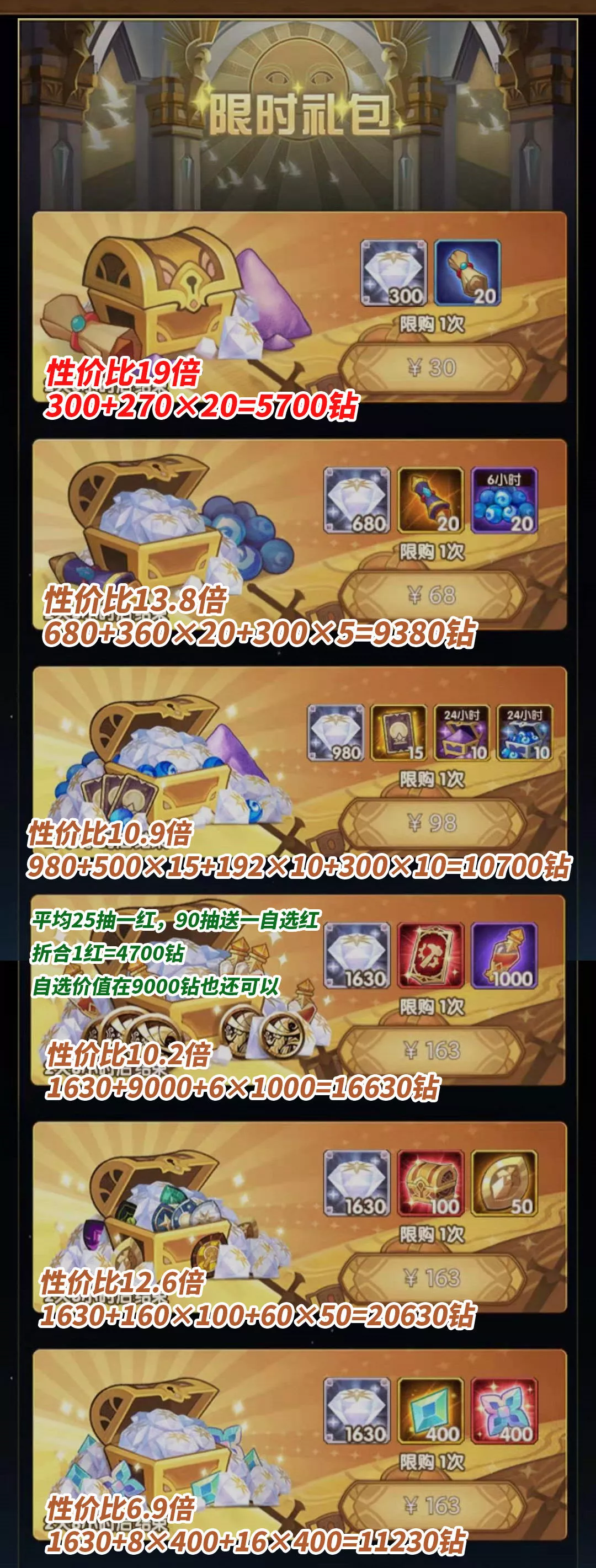 本次氪金礼包总体性价比都不错,正常限时礼包的性价比,