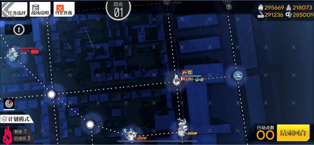 第三回合,敌人已被消灭的差不多了,看敌人在哪里还有剩余,消灭最后几个敌人即可