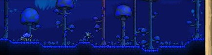 发光蘑菇生物群落中的草和植物,以及它的许多独特的敌怪都会发出一种醒目的蓝色光芒。