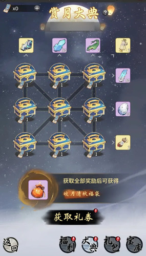 拿到礼券后可在赏月大典上打开礼盒获取相应的奖励