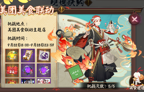*活动内容:美团美食携手小龙坎、赛百味、泸溪河、来伊份、娃哈哈奶茶等数十个美食品牌,邀大人们共享美味。在全国美团美食联动阴阳师主题线下门店3公里范围挑战食灵鬼王,非范围内的大人可以加入其它阴阳师的队伍挑战!