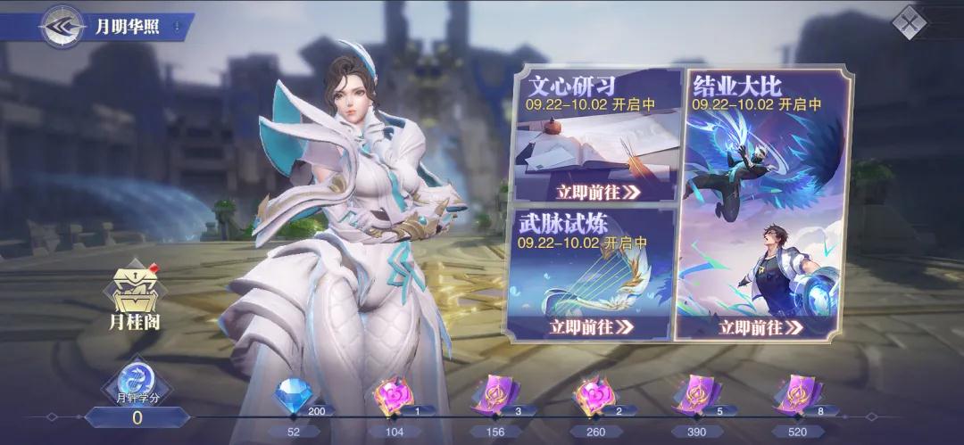 「月明华照」将分为文心研习、武脉试炼和结业大比三个活动玩法以及限时特惠商店月桂阁·月韵宝华。