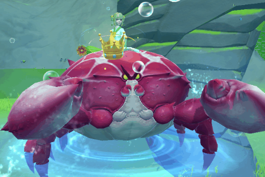 沉眠帝王蟹是水陆两栖坐骑,行走之时身下水波微漾,蓝光氤氲中小泡泡嘟噜咕噜飘散,值得一提的是帝王蟹陆地上是横着走路,张牙舞爪横行霸道,在水里却是正着前行,尽显水中帝王风范。