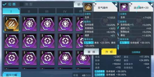 3、高品质插件还可以进行进一步的升级培养,获得额外的属性加成词条,带来更多的增益。