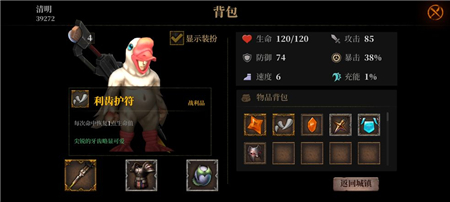 大鹅时装暴击概率眩晕,圣光护符眩晕百分百暴击,冲击弩一次攻击多段伤害,利齿护符每攻击一次会一滴血但是冲击弩一次能会6滴左右(这个没数)