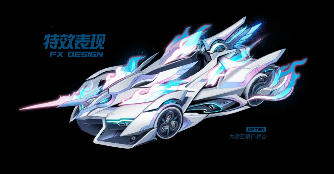 车身特效则设计了多个表现位置,比起以往覆盖全身的轻微车身特效,这次的车身大喷变形后会有多个局部迸发出幻彩特效覆盖全身,在这些位置的结构也用了压暗处理来使特效对比更加明显,粉蓝之火热情燃烧,战斗状态的缤纷神驹化可爱为力量纵身飞跃层层阻碍。