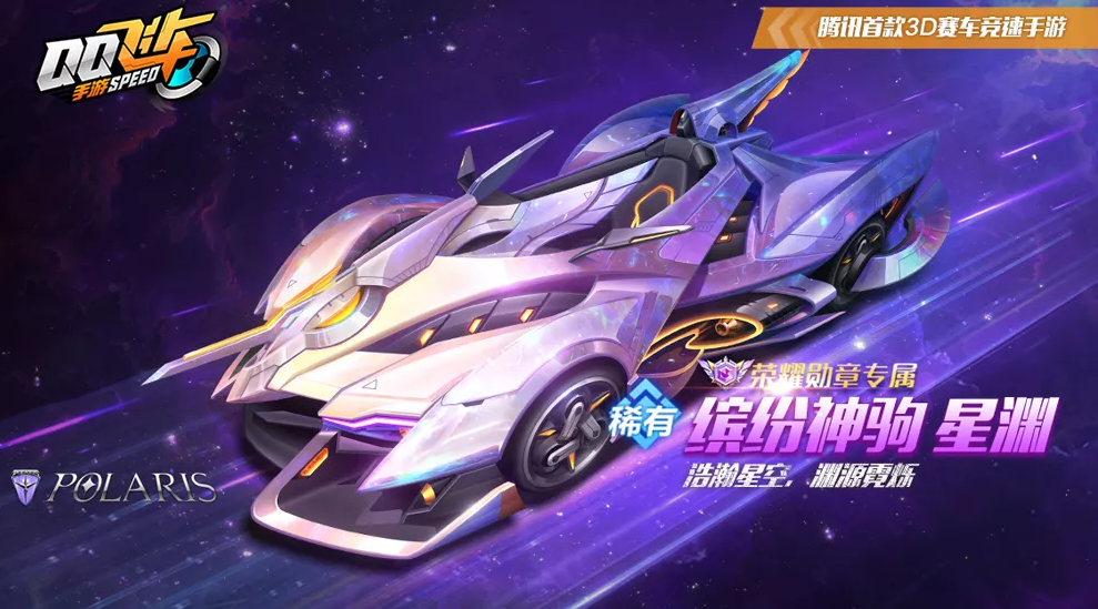 神圣独角兽置于万丈星空,迷幻色彩又多了几分,荣耀勋章皮肤缤纷神驹 星渊来袭,独角兽蓝角蓝眼升级为耀眼金色,车身由粉到紫从前向后过渡,璀璨星空梦幻皮肤,你还记得梦开始的地方吗?