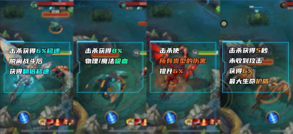 3、击杀增益:击杀小龙之后可以为队伍带来不同的群体BUFF加成,这些增益是永久的,在整局对战中都会存在。风龙:击杀后获得6%移速,脱离战斗后获得翻倍移速;水龙:击杀获得8%物理/魔法吸血;火龙:击杀使所有类型的伤害提升6%;土龙:击杀获得 5秒未受到攻击获得6%最大生命护盾。