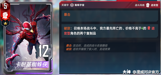 卡耐基蜘蛛侠:在合理的站位下可以源源不断的提供暴击频率,是鹰眼暴击套的发动机。