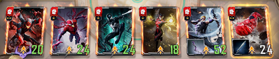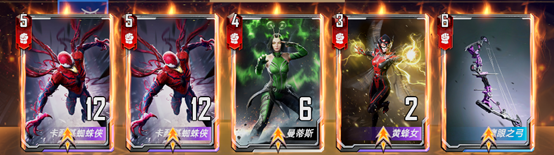 | 鹰眼暴击卡组 | 九头蛇卡组 | 残暴浩克流 | 惊奇队长卡组 | 蜘蛛眩晕流 |
