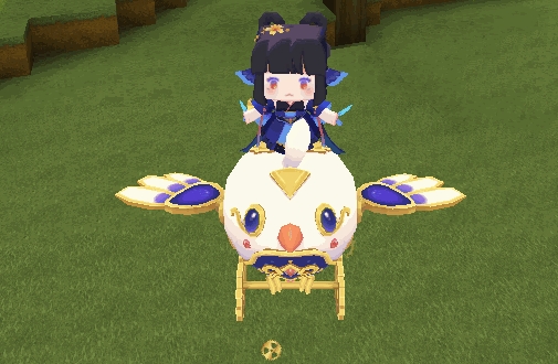 咕咕是一级的坐骑,其站在转动的齿轮上,周身会出现金色的小齿轮,十分的可爱。