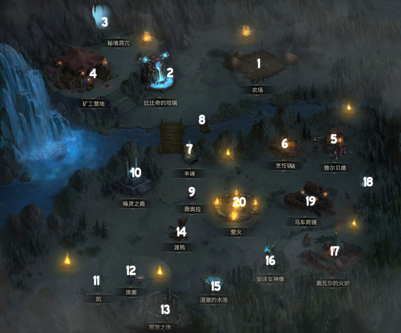 | 奥瓦尔火炉 | 矿工营地 | 远古飞龙 | 薇奥拉解锁 | 安详女神像 |