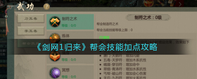 剑网1归来游戏中帮会是一个很重要的玩法,那么具体如何给技能加点呢?相信还有很多小伙伴不清楚,对此游戏爱好者小编特地为大家准备了相关的详细内容,让我们一起来看看吧!