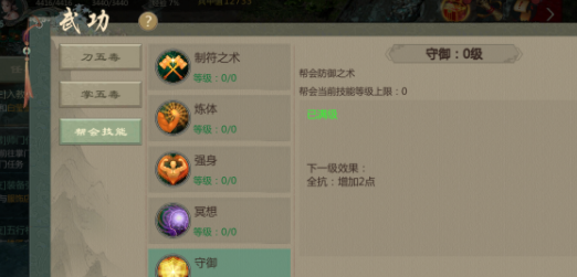 第三个就是守御这个技能了,属性在游戏中是非常核心的一个设定,不管是门派还是电热都是有属性设定的。而守御可以带来全抗的提升,对于各个属性的伤害都有一定的抗性,能够减免不少的伤害,性价比非常的高。