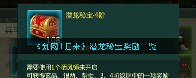 《剑网1归来》游戏中潜龙秘宝的奖励是随着阶段的提升进行变化的,下面,游戏爱好者小编就为大家准备了关于这方面的详细攻略,一起来看看吧!