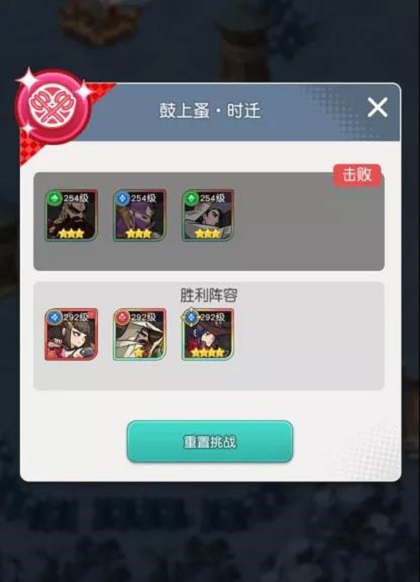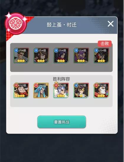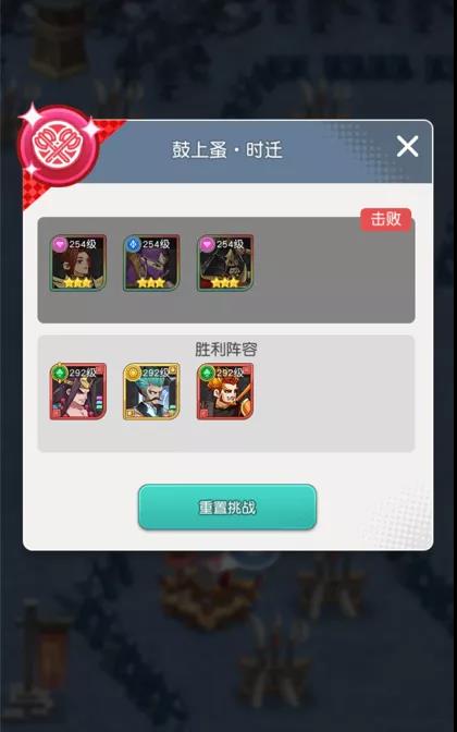 1、首战,单挑这梁上君子团战实力拉垮,可单挑还是很厉害,试了王英、杨志,单挑都打不过他,不过我们还有新英雄“焦挺”,黄色品质就轻松胜他不愧是相扑能手。