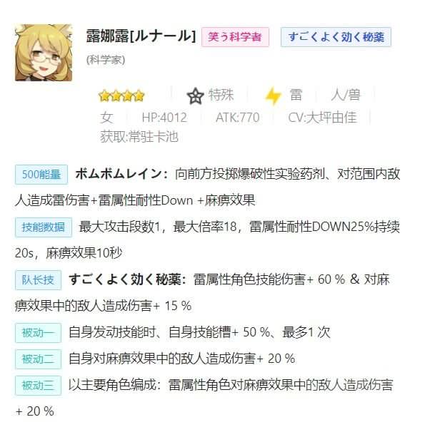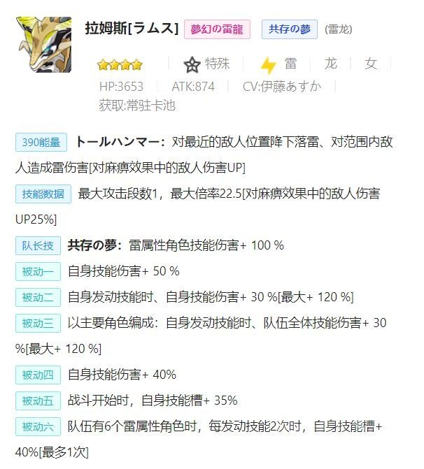 麻痹手+珍贵的雷耐性down,并且还有一次50%回充,即便在日服环境也是比较常用的雷属辅助。