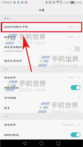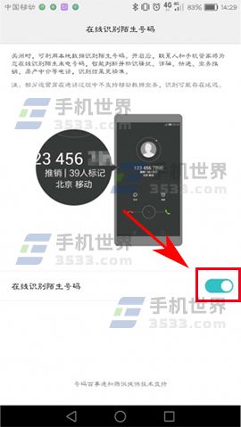 2)接着点击【在线识别陌生号码】选项,然后把开关开启就可以启用该功能了。(如下图)