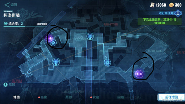 如图中所示,打开地图看见图中的紫色点就是侵蚀带,刷完支线就会出现。