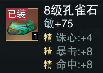 宝石精琢中,暴击石头加的暴击数值比敏石头高: