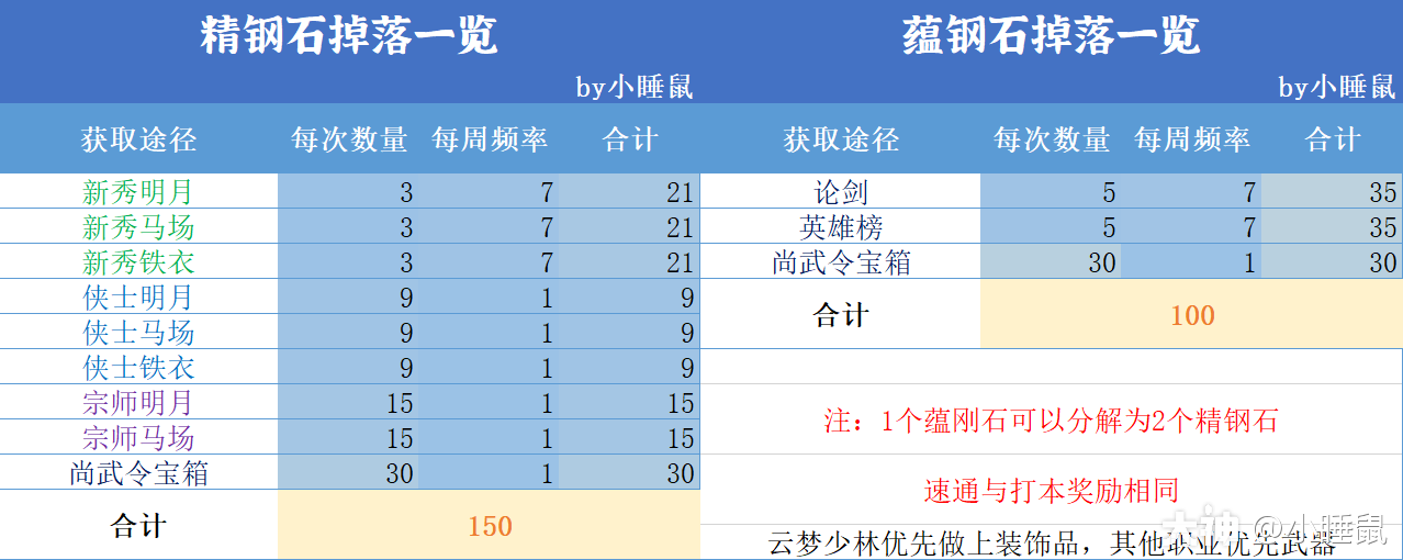 ②以下是精钢石(1阶)、蕴刚石(2阶)获取方式: