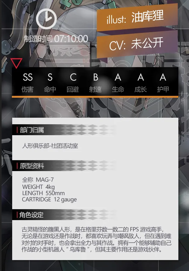 少女前线游戏中的四星霰弹人形MAG-7是新上线的角色,那么具体的属性怎么样呢?对此,不了解的小伙伴,那就快来看看小编给大家准备的相关游戏内容吧!