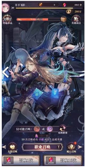 职业召唤可以选择两个职业的英雄进行召唤,召唤只会出你选择的这两个职业,没有心愿的存在所以性价比上面低于魔石召唤,优点是可以召唤到神魔英雄