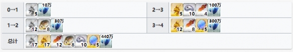 3 → 4:术阶金棋*12、凤凰羽毛*8、九十九镜*5、QP300万