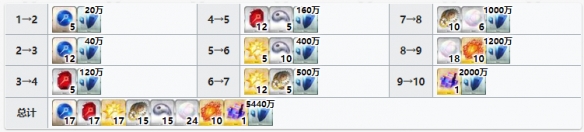 2 → 3:术阶金棋*5、枯淡勾玉*10、凤凰羽毛*4、QP100万