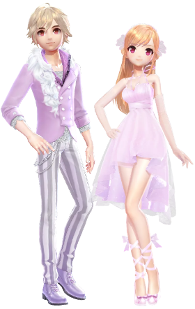 男生身穿粉紫色西装搭配凌乱有致的发型潇洒不羁;女生长发飘飘,柔软纱裙在微风中飘逸动人,宛如蝴蝶仙子一般~