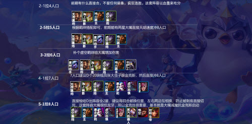 前期疯狂拉人口就好,装备有什么直接合,不等任何装备,比如我前期有攻速大棒魔抗,直接合羊刀然后选秀拿拳套做水银,电刀的话后面在做也不着急。