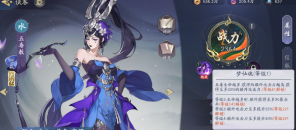 阿岚这个侠客在品级上是紫色大侠品级的,基础的设定还是不错的,成长的上限也是很高的。在属性上是水属性的五毒教,这个门派的话一般都是使用毒气来攻击的。在职业上是术士,也就是靠技能来进行输出的。继续看技能。
