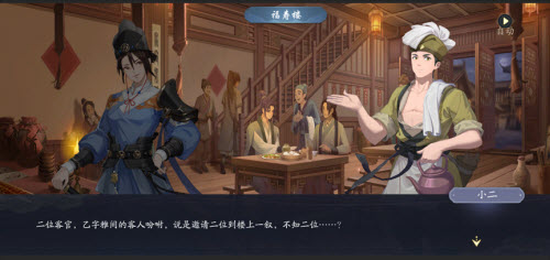 闹事的老乞丐很快就被抓走了,这里应该只是事件上的铺垫,暂时按下不表,还是根据提示先跟陆小遥去【福寿楼】吃饭。