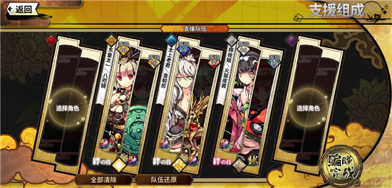 根据等级决定的统率的不同,上阵姬神/物灵也不同。支援指的是你在好友或者系统定义姬神里选择一个姬神作为助战,不消耗统率,每天不限次数,所以有一个大佬好友还是很有必要的。