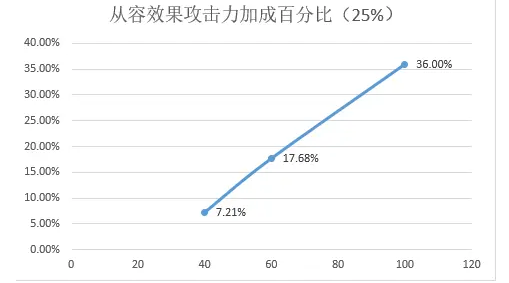 这里可以确定从容效果带来的攻击力提升是攻击力总值百分比加成,作用角色本身的攻击力越高,加成越高。