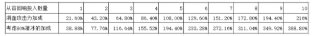 而从容效果:每per血量攻击力加成 = 提升从容百分比 * 1%从容提供每per血量攻击力加成;已知 25 * 1%从容提供每per血量攻击力加成 = 0.48%;推测得到,1%从容提供每per血量攻击力加成 = 0.0192%;在凝冰系统80%加成的加持下,提升从容的百分比 *= 1.8;单独考虑满血量(理想情况),水氪金盘的从容回响带来增益如下: