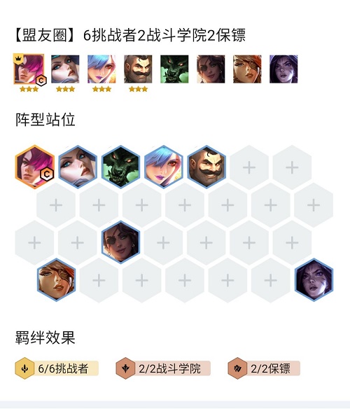 9、七人口开出六人挑战两学院,血量高就上八搜两星,和找两星的布隆和剑姬以及卡莎。血量较低先搜出永恩两星锁血即可。这套阵容作为版本新答案,吃分真的太稳定了,但站位和运营也需要大家的游戏理解想,所以还是强烈推荐大家去试试看。
