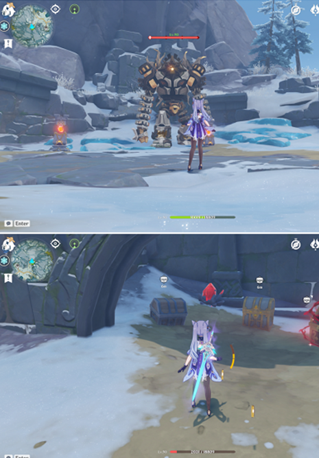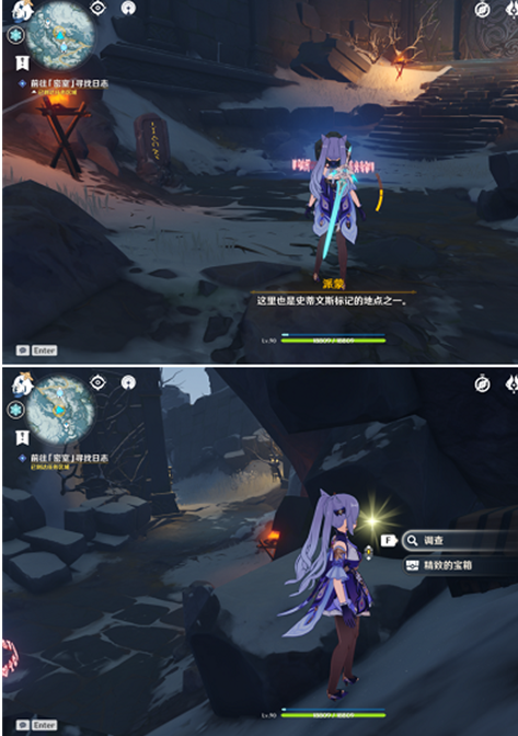 5、激活后需要击败一个遗迹重机,击败后木门会开启,开启宝箱后会获得一本考据书本,将会开启任务“覆雪之国”。(注:并不是一定需要先获取这本才会开启任务,任意获得其中一本都会开启任务)