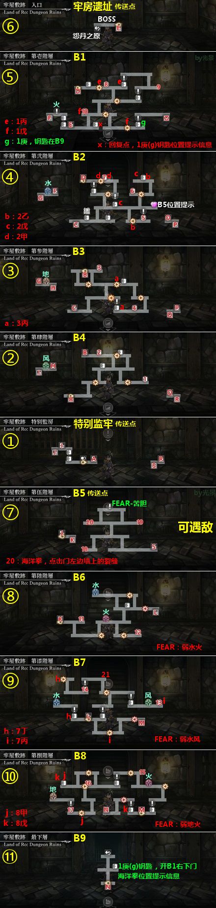 ②VS苦胆:B9拿到1庚钥匙后,在B1右下开门到B5,在最上方打苦胆。