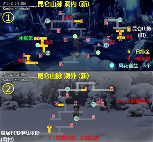 地图:2张。横线:冰墙,lv1~5:冰晶弓等级为1~5才能打破冰墙