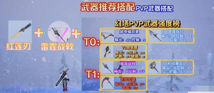 这里推荐红莲刃搭配:雷霆战戟加一把T0或T1的PVP武器就可以在PVP中很舒服了。