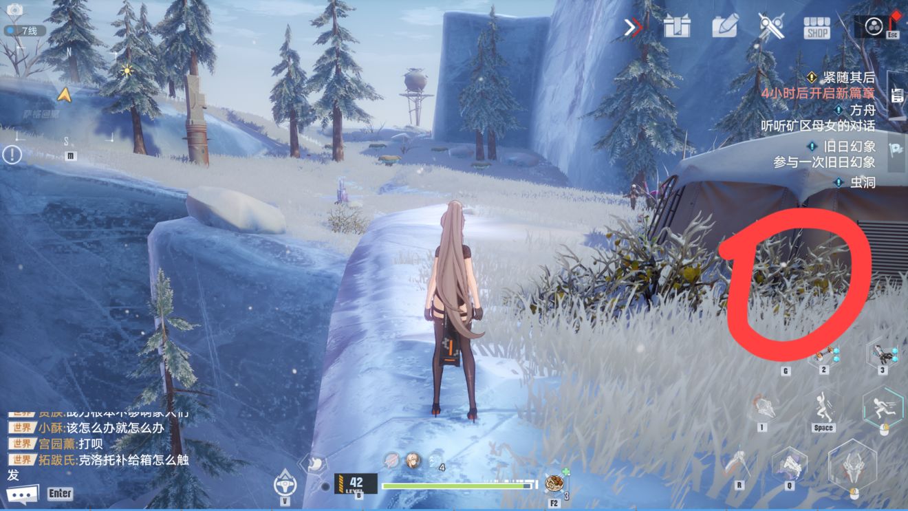 2、上图为第一个碎片位置,左边是冒出一个头的建筑物声呐塔(标志物方便大家找到)