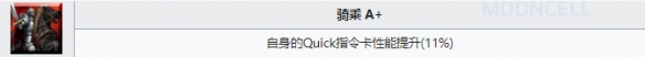 骑乘 A+:自身的Quick指令卡性能提升(11%)
