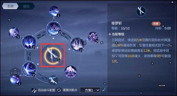 优先1技能(魂心)与3技能(轮转),增加天忍的伤害与存活能力