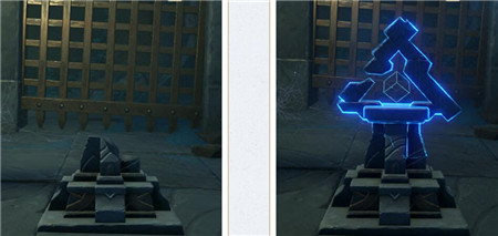 在渊下宫,还有着这种三角的机关。它是一种能在一定距离内可以通过攻击来激活的机关。